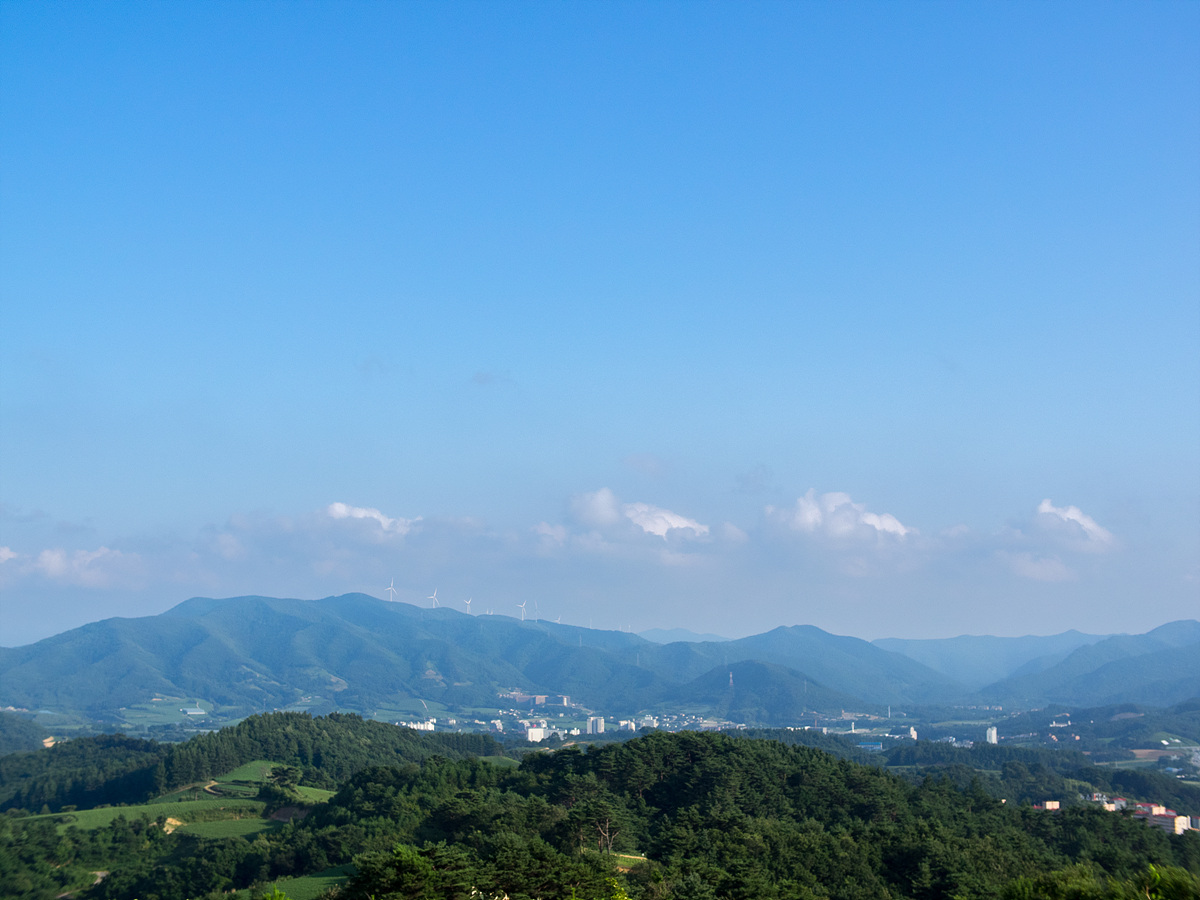 우리가 예약한 펜션은 거의 끝쪽에 있어 펜션에서 대관련이이 쫙 펼쳐저 있어 전망이 정말 좋았다.