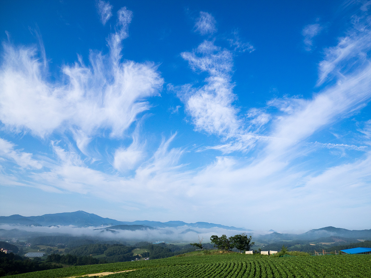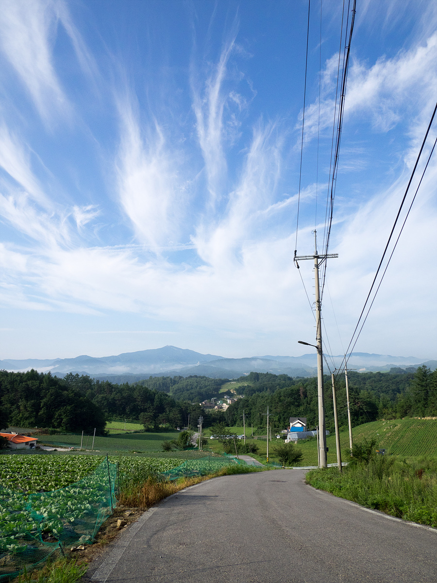 이 곳 주변은 보호구역이라고 한다. 그래서 철망으로 막혀 있는 듯 하다. 그리고 밭쪽으로 가면 위와 같이 횡계가 눈앞에 펼쳐진다.
