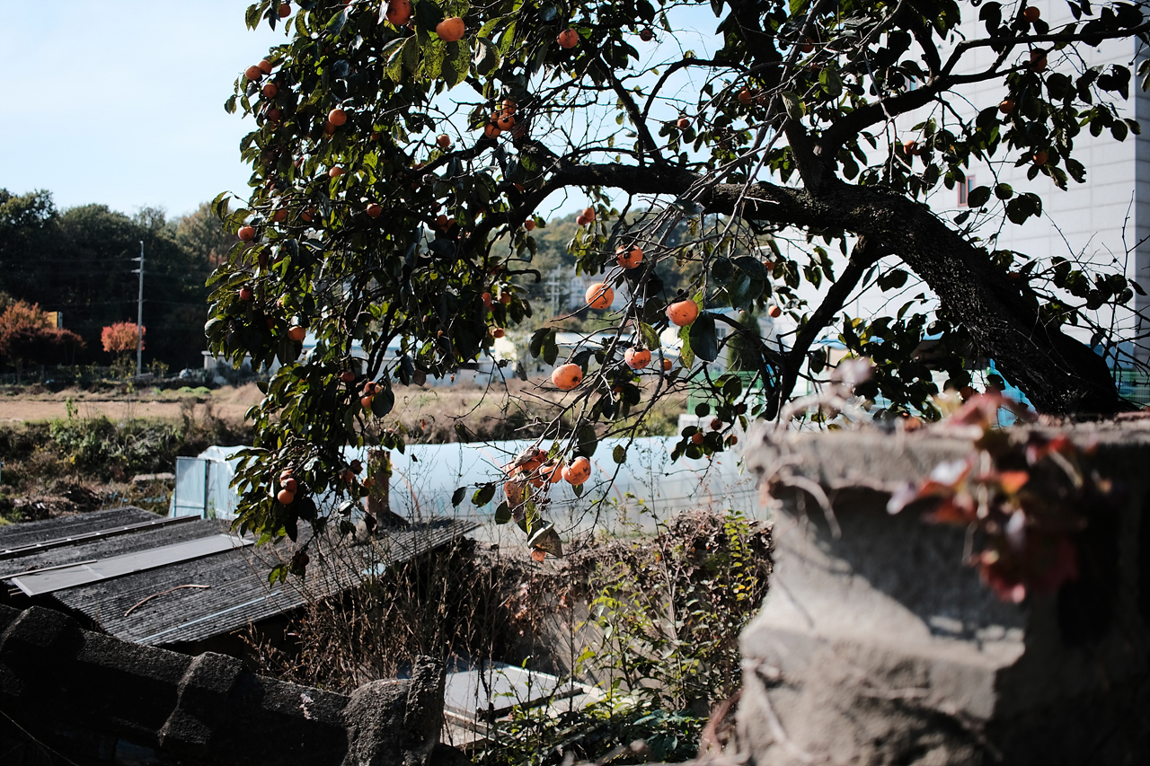 골몰길에 들어서면 폐가 옆에 있는 감나무에 감이 열려있고 잎들은 떨어질 준비를 하는 것 같다.
