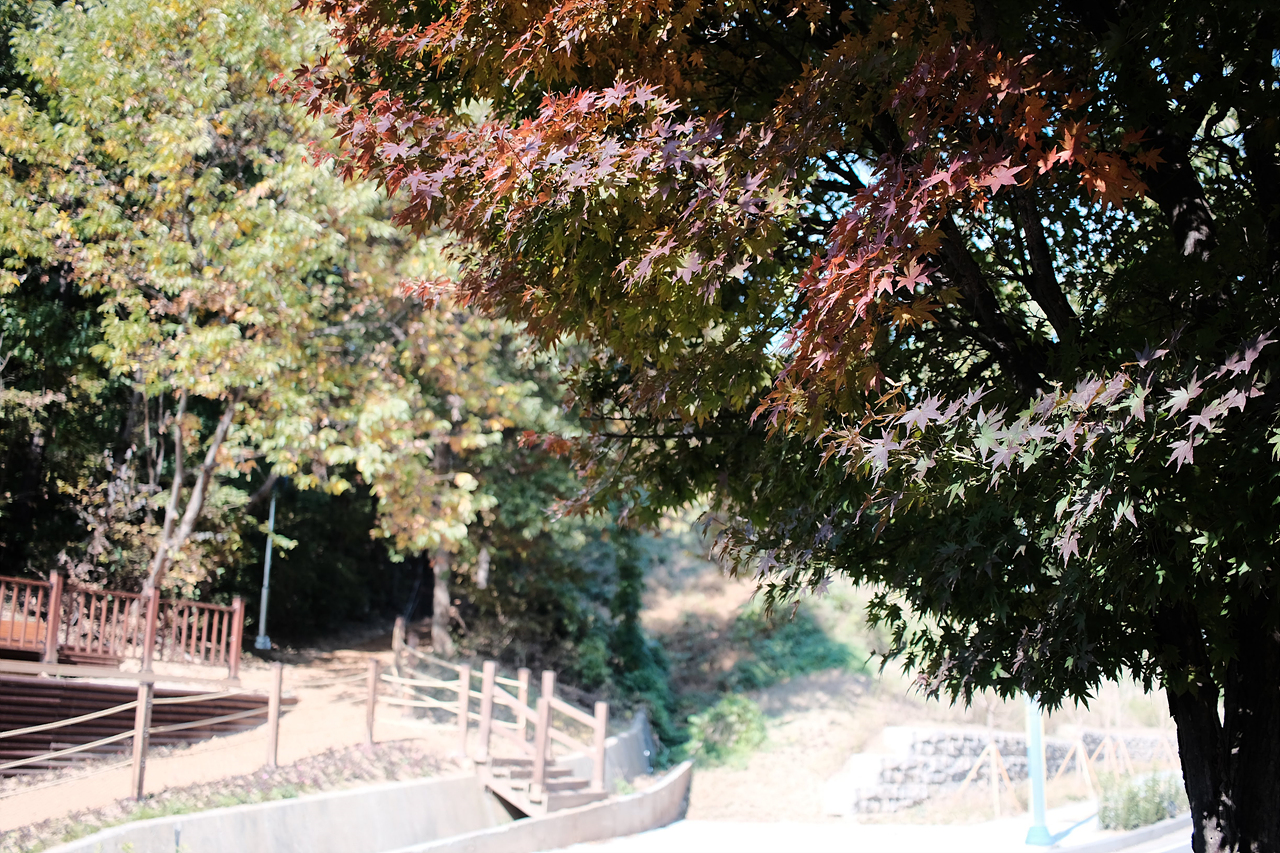 시골에서 회사 생활을 하니 도심에서와 다르게 점심 시간에 이런 풍경을 보며 산책을 할 수 있다는 것이 너무 좋다. 가을 날이 좋은 날 후지 X-T2에 캐논 24mm f2.8 stm 렌즈를 마운트 하고 천천히 풍경을 감상하며 걸었다.