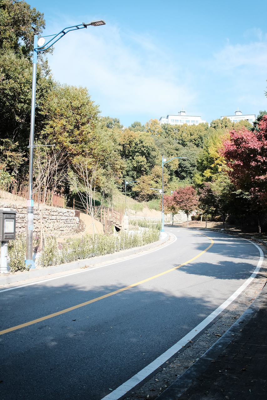 내가 좋아하는 길이다. 아파트 단지 뒤쪽에 조그만한 산을 넘어가는 고개길인데 가을이면 단풍이 아주 예쁘게 든다.