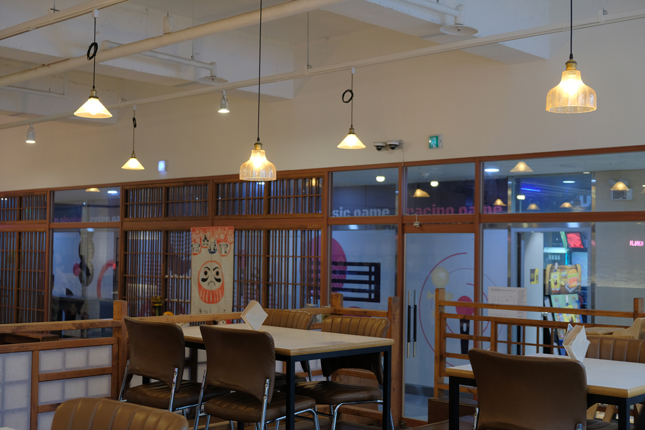 1층에 오락실이 있고 계단을 통해 2층에 올라가는 바로 보인다.