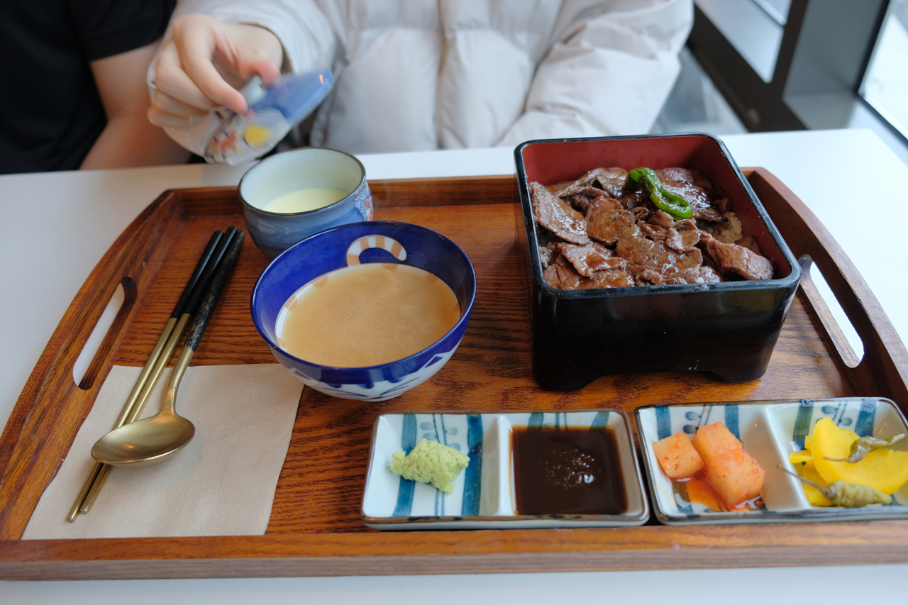 딸은 스테끼동을 시켰다. 살치살 덮밥이다.