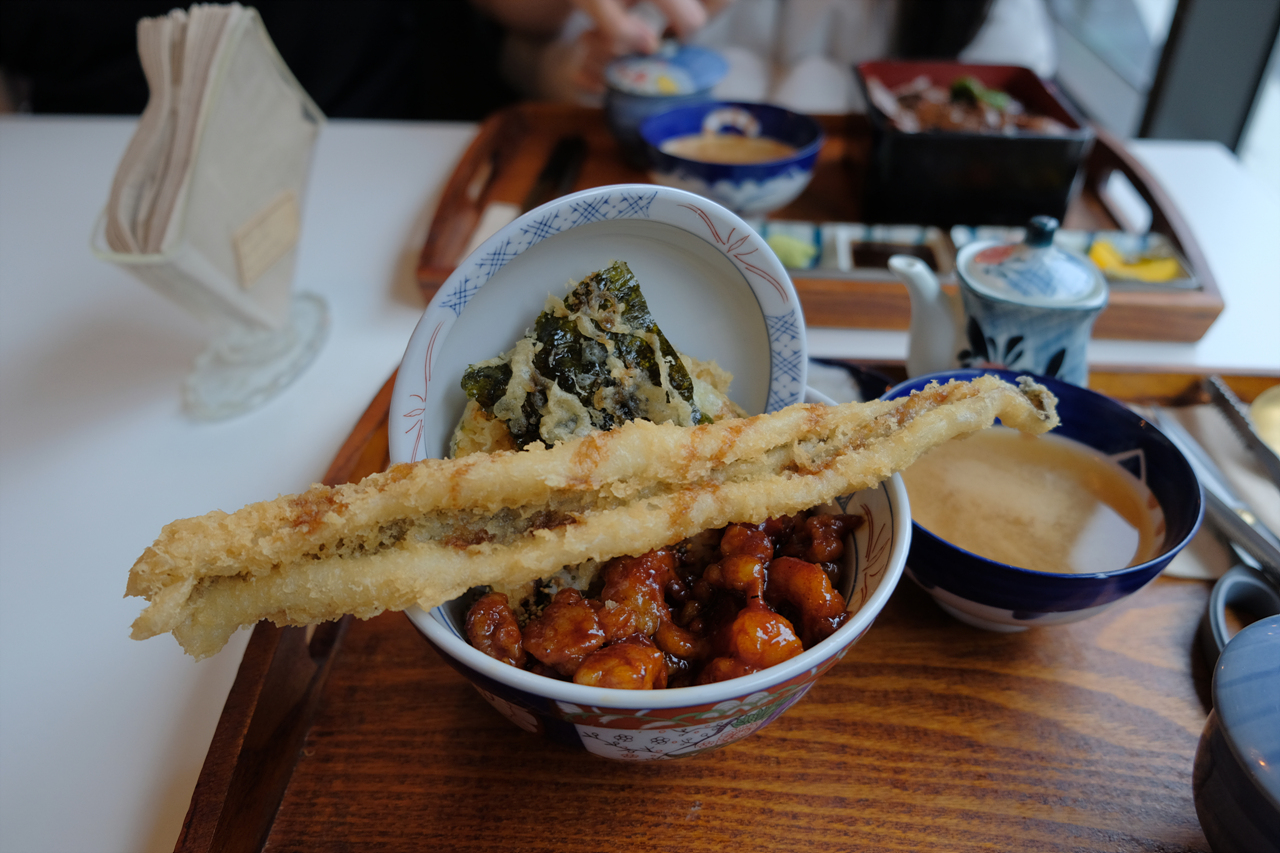 나는 호르몬 아나고텐동을 먹었다. 대창과 장어가 메인이다. 아나고를 장어로 메뉴에는 표기가 되어 있다.