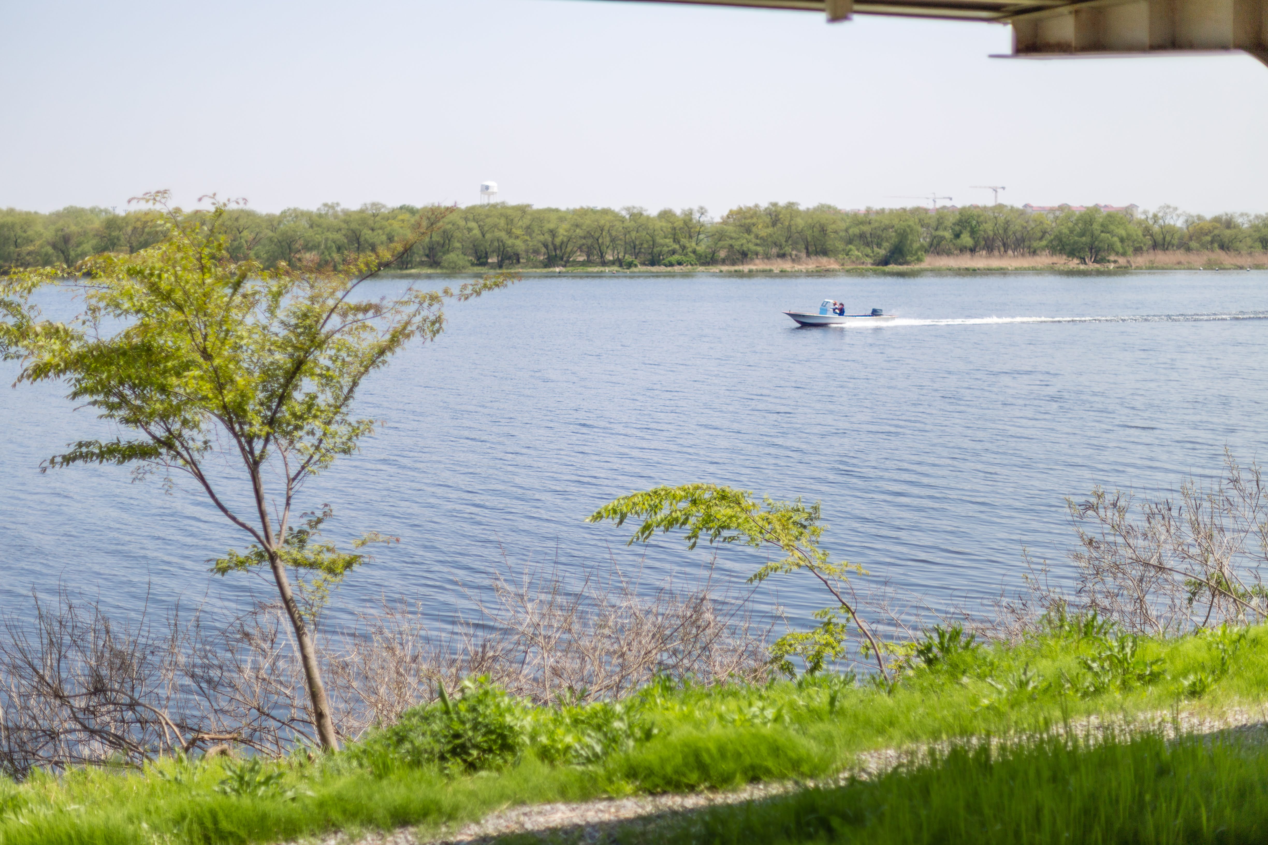 강을 바라보면 멍을 때리고 있는데 보트 한대가 지나갔다.