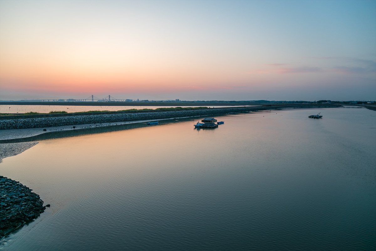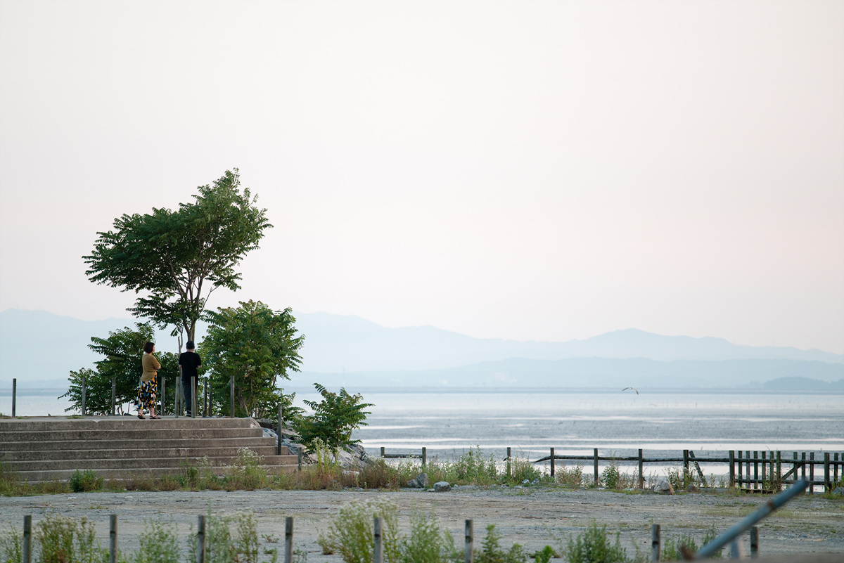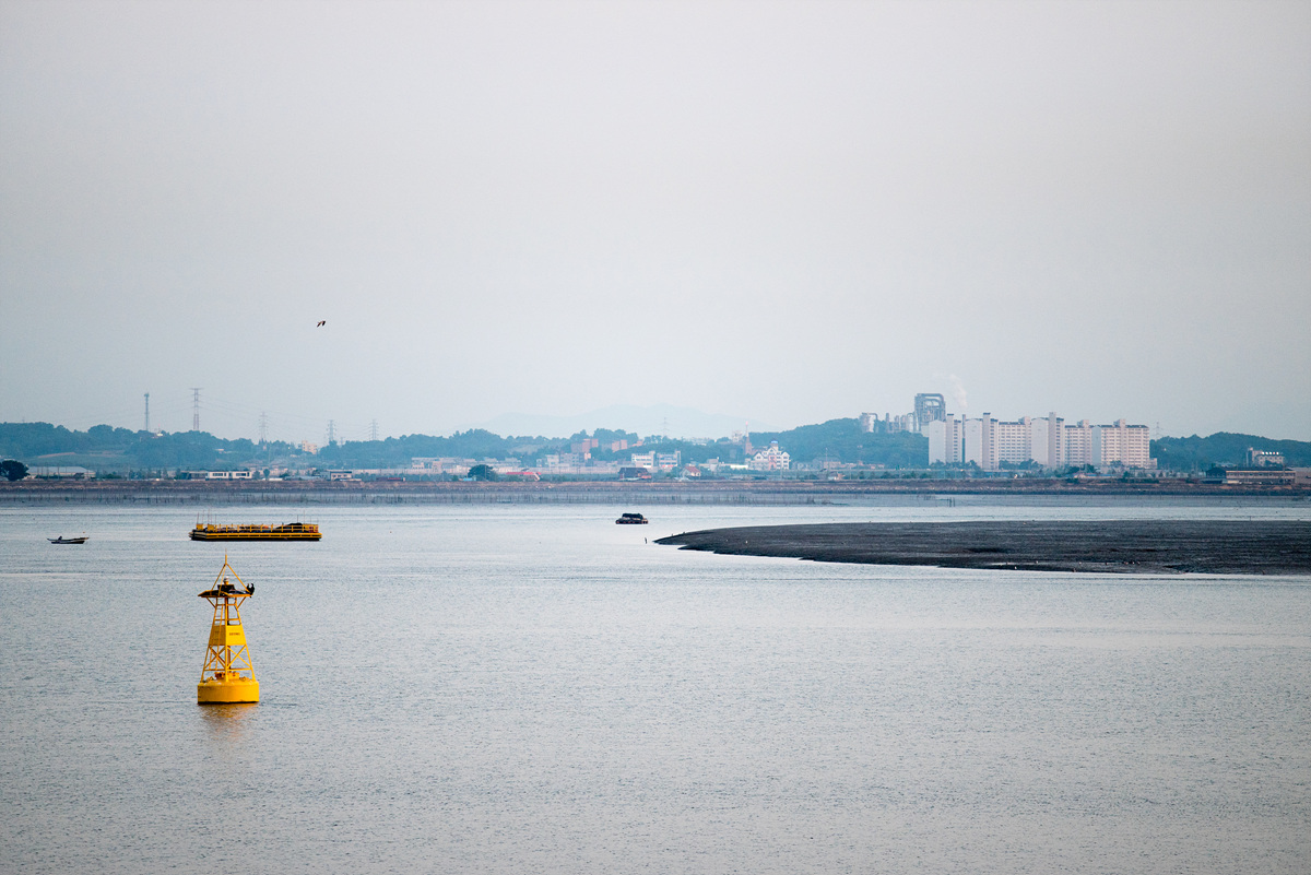 물길 앞에 넓게 펼쳐진 곳이 사실은 바다였다. 지금 엄청나게 큰 간척지를 만들고 있어 이런 풍경이 만들어졌다.