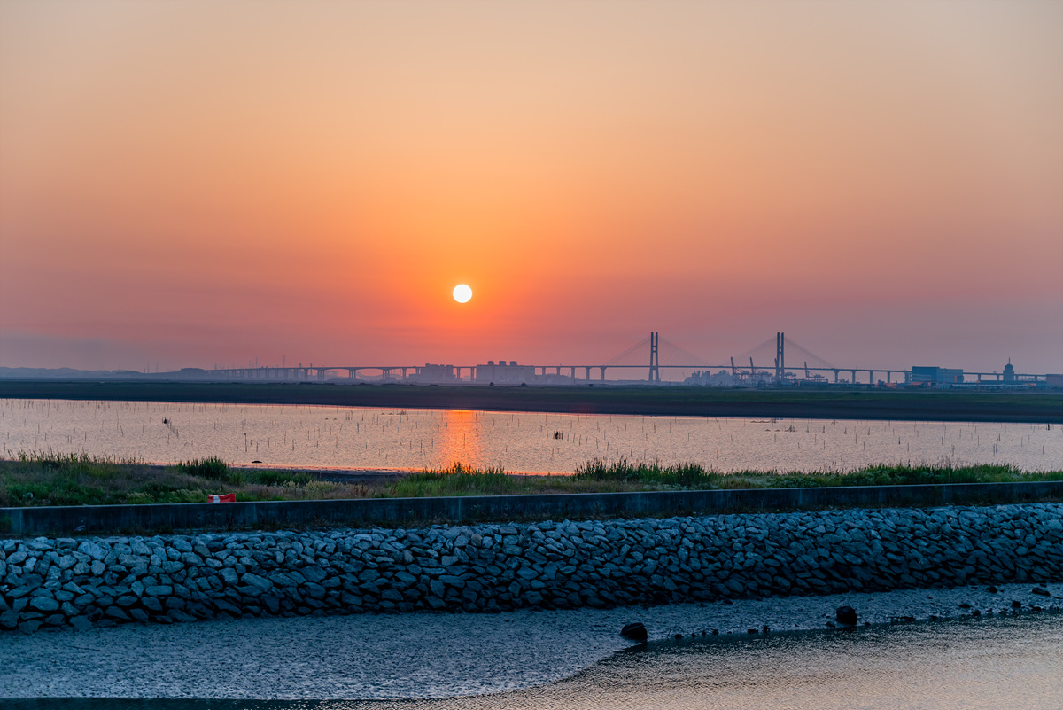 현재 아산만에 거대한 간척지를 만들어지고 있다. 내가 사진을 찍은 곳은 간척지 공사를 위해 만들어지는 다리가 있는데 이곳에 올라가서 일몰 사진을 찍었다.