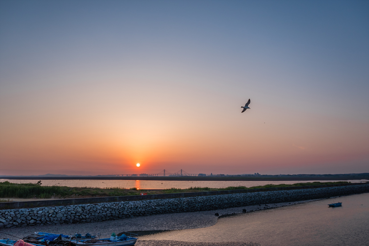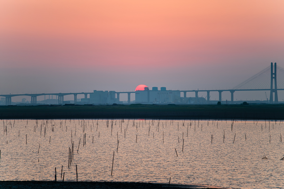 일몰을 찍기 위해서 아산만에 갔다.