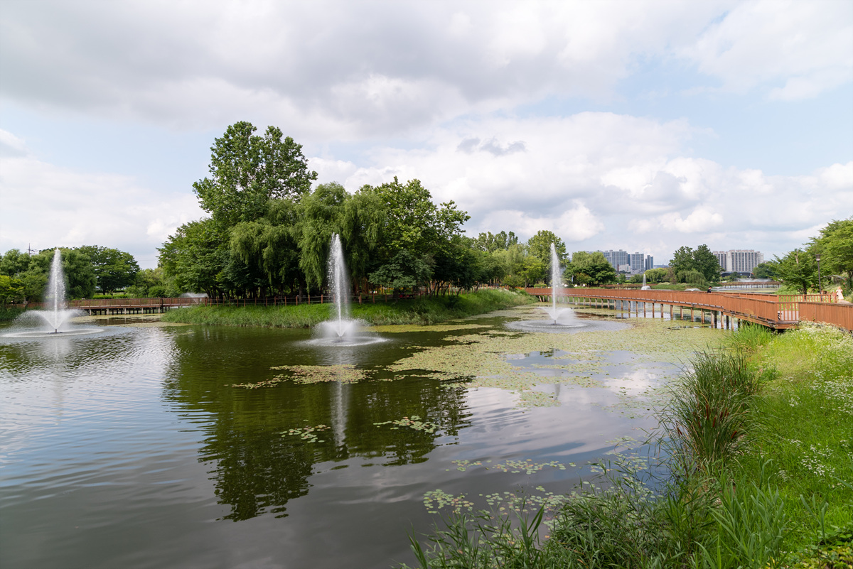 입구쪽에만 수련과 연꽃이 있고 아래 사진처럼 넓은 곳은 분수는 있지만 연꽃이 없습니다.
