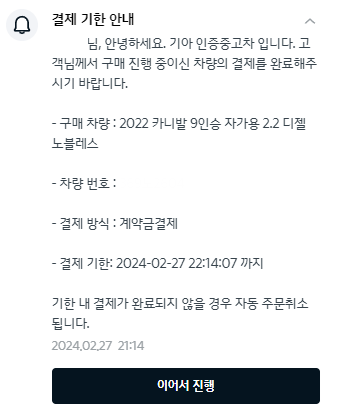 인수가 완료되면 바로 기아 커넥트를 이용할 수 있다고 연락이 옵니다.