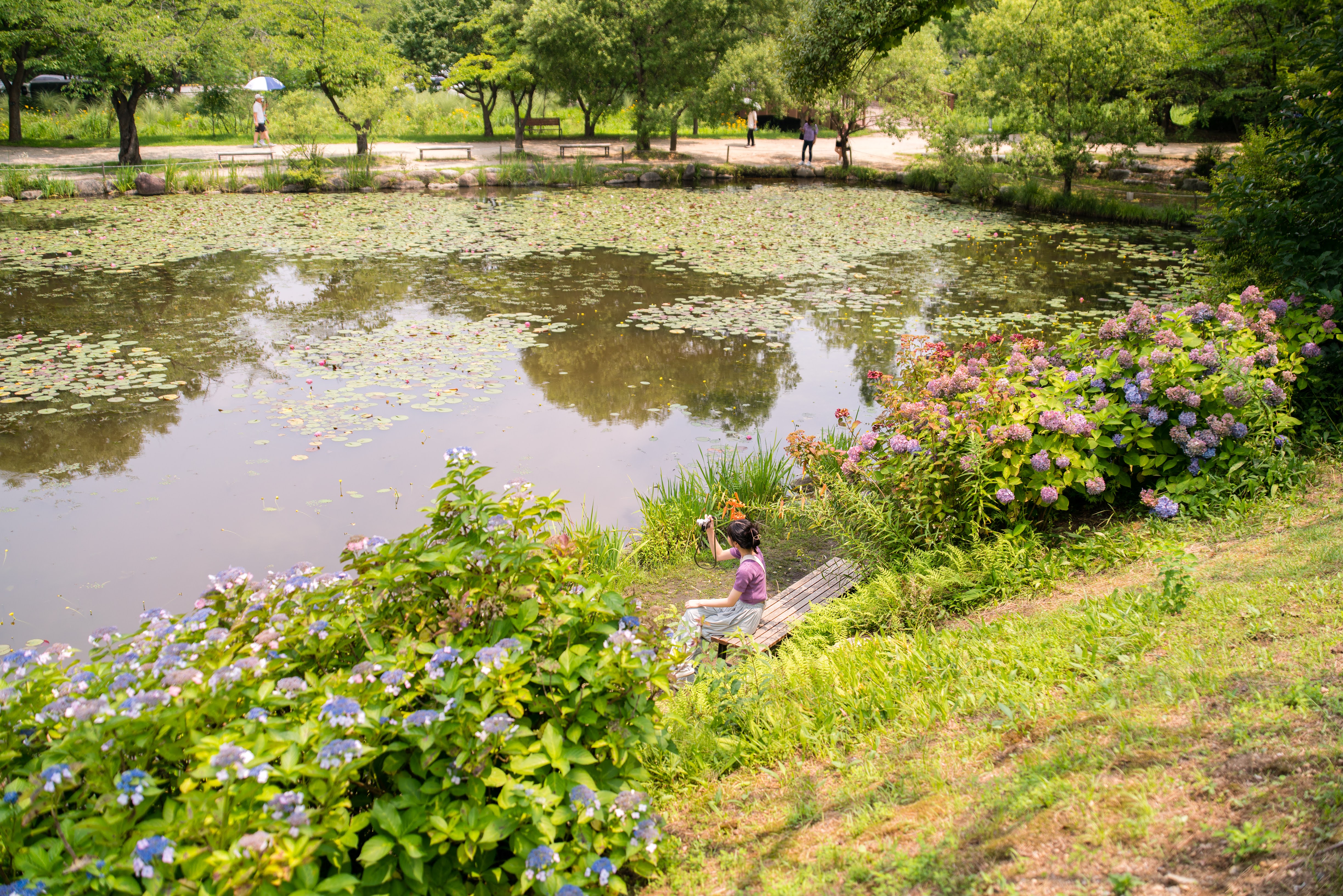 7월 중순, 장마 시즌인데 이번주에는 주말에 비가 오지 않아 물향기수목원에 방문을 했다.