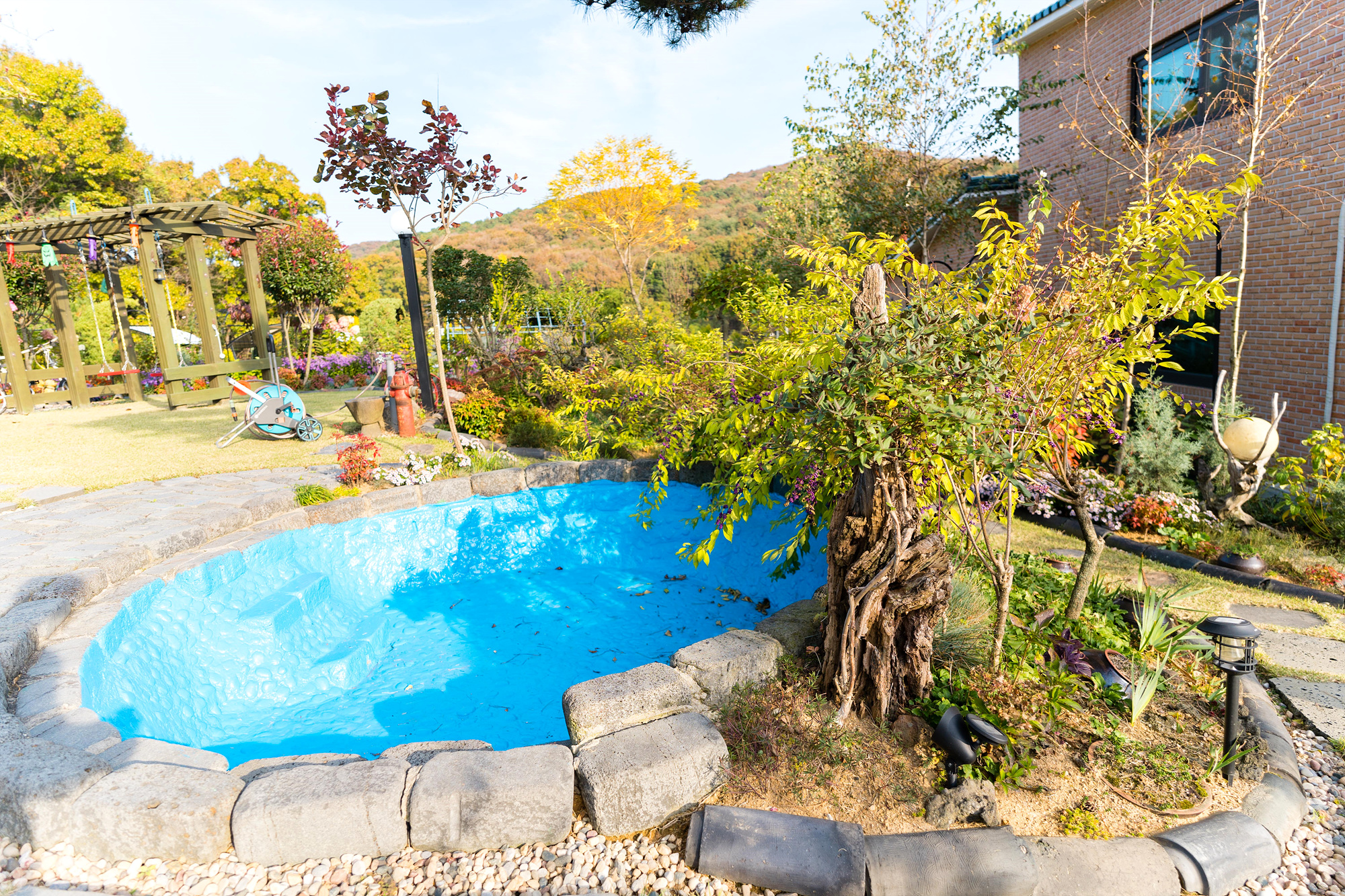 작은 수영장도 있습니다. 여름에 이곳을 대여하면 아이들과 물놀이 추억도 남길 수 있습니다.