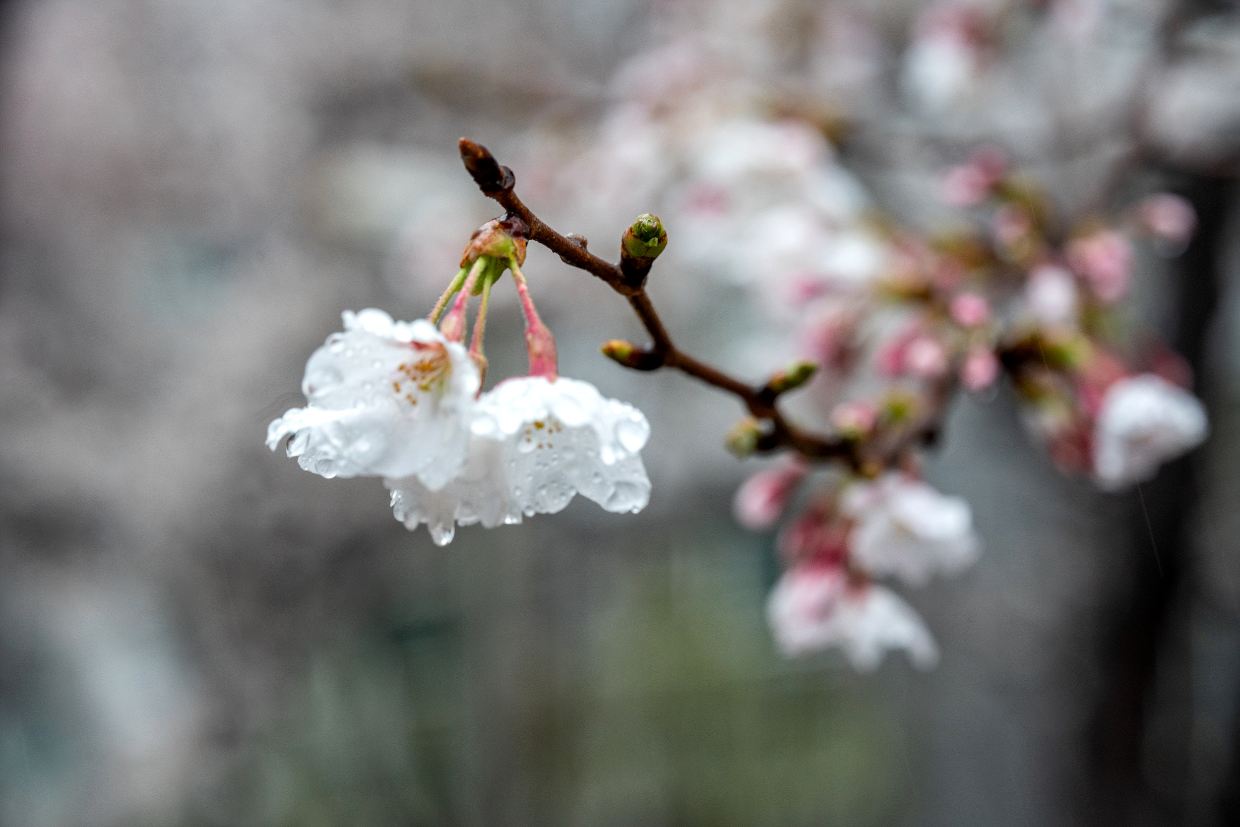 벚꽃이 피기 시작하는 토요일에 비가 왔다.