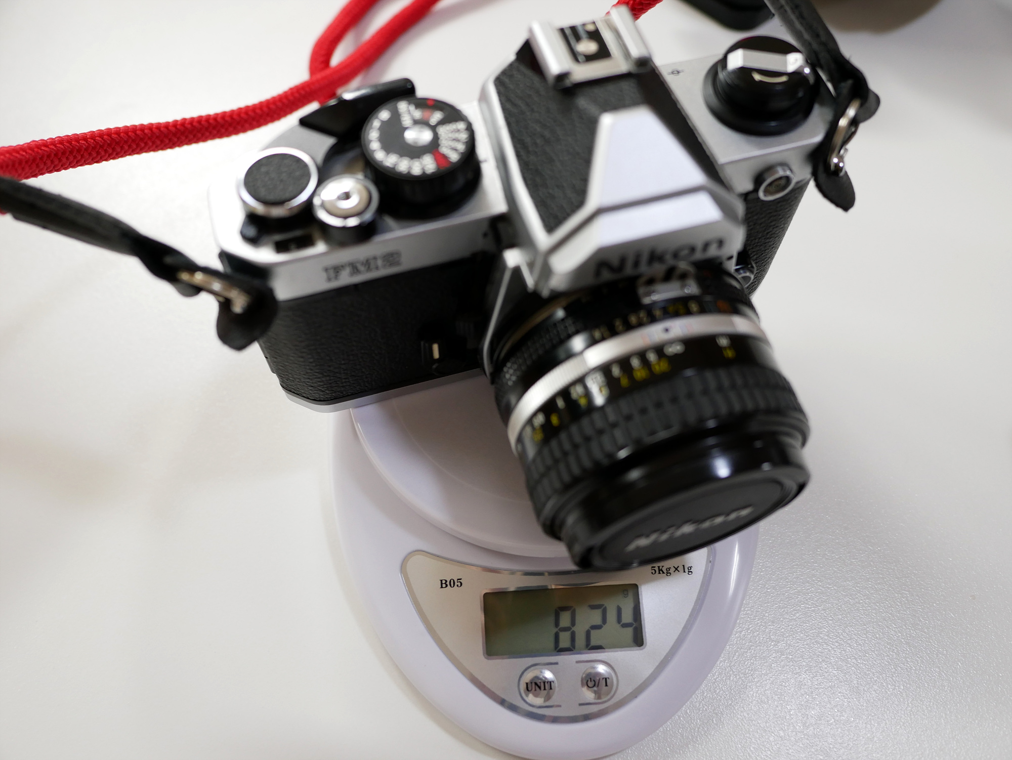FM2 + 50mm f1.4를 마운트하고 824g이 나옵니다. 필름과 배터리가 없는 상태입니다.