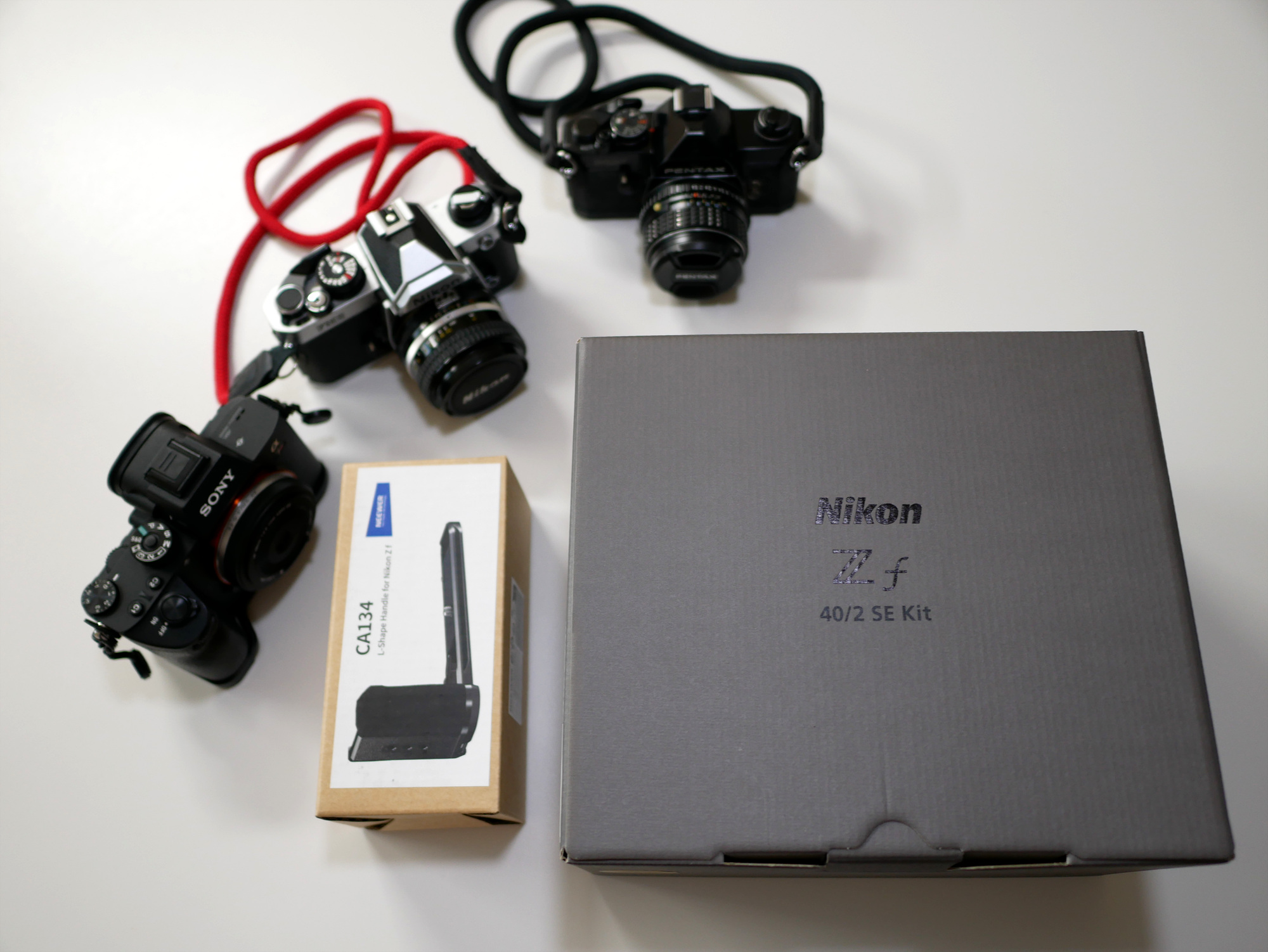 역시 새제품 개봉은 기분이 좋습니다. 무게 등을 비교하기 위해서 가지고 있는 FM2, MX, A7R3를 꺼내 놓고 개봉을 시작합니다.