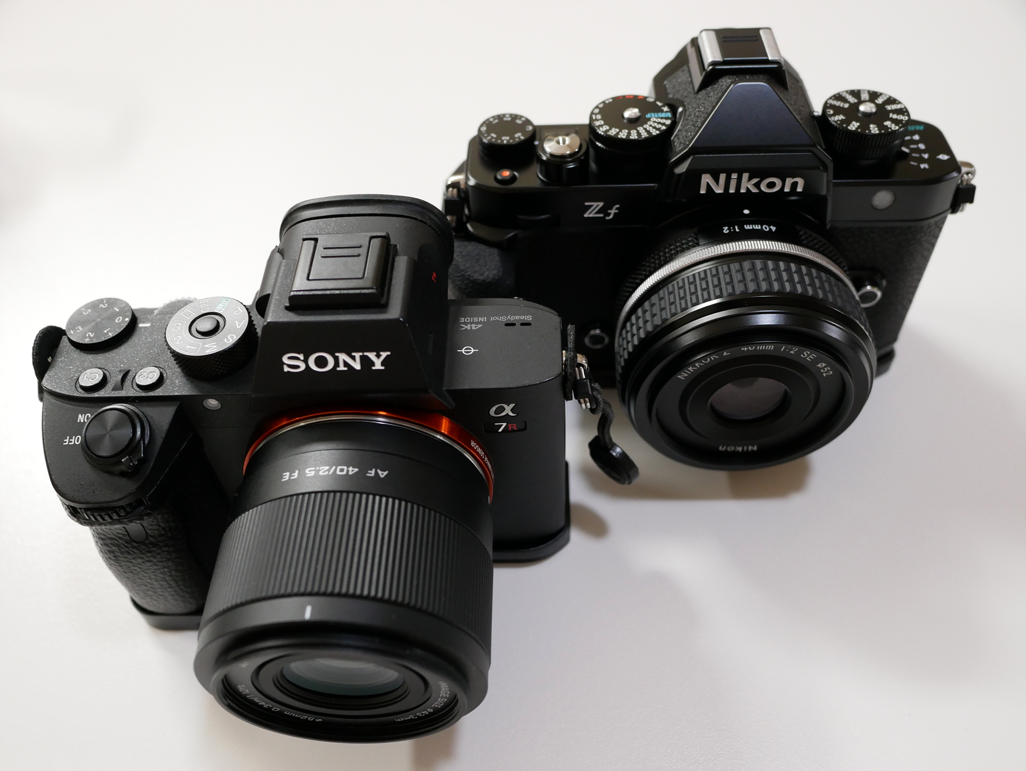 4대를 놓고 찍어 봤습니다. A7R2에는 Viltrox 40mm 렌즈를 마운트 한 상태입니다. 소니가 확실히 작기는 작네요.