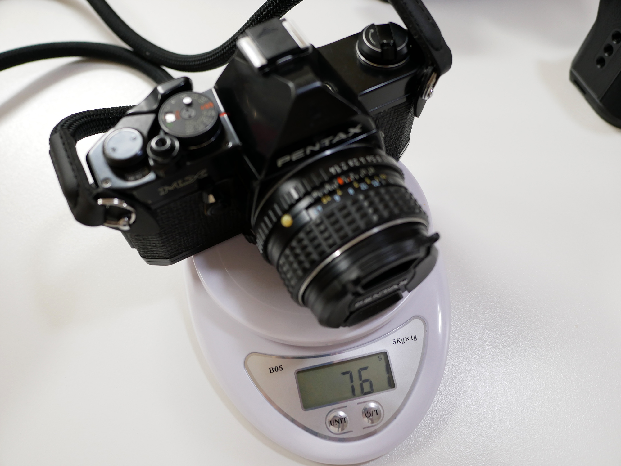 MX + 50mm f1.4는 761g이 나오네요. 필름과 배터리가 없는 상태입니다.