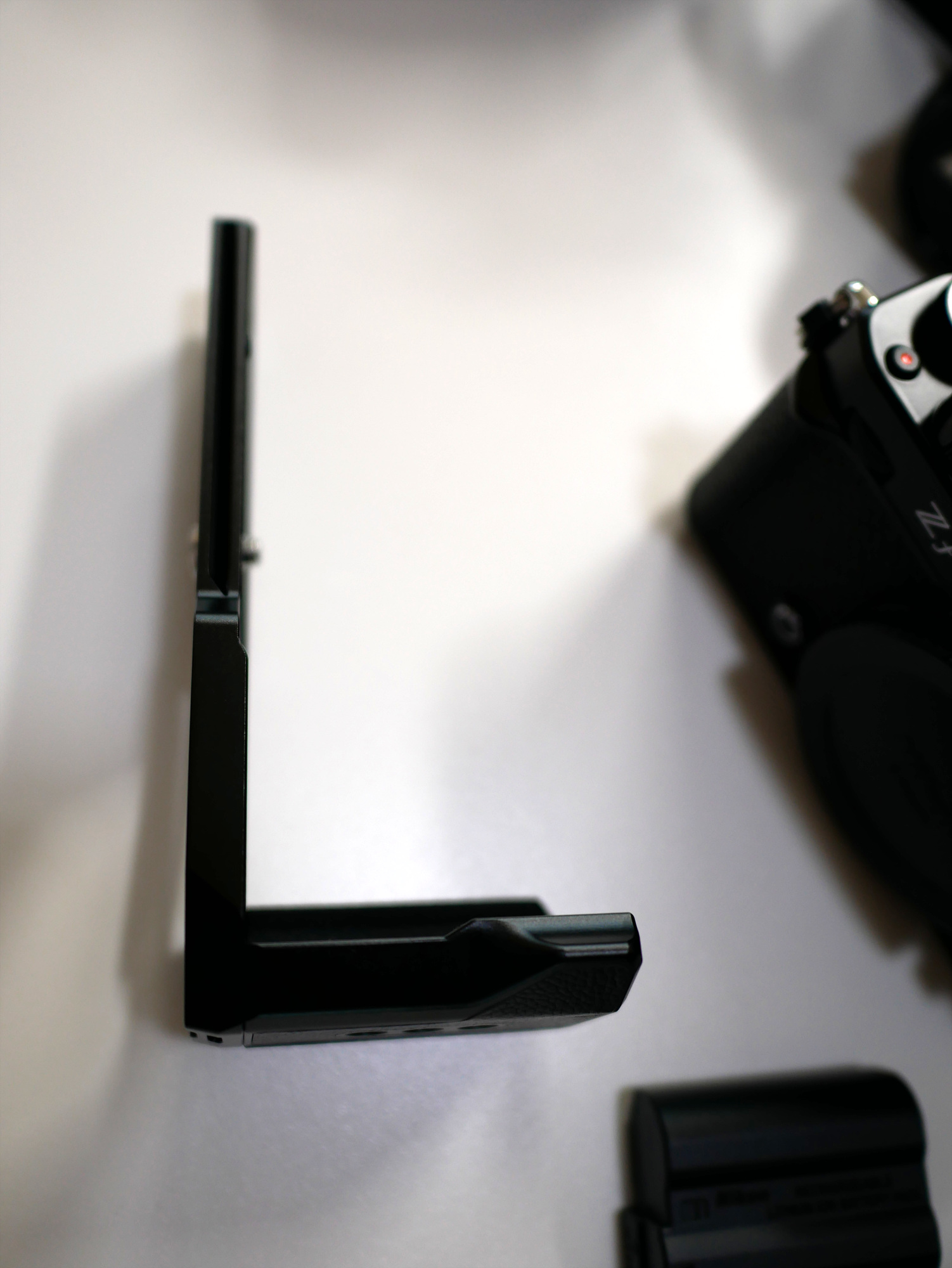 그립과 렌즈 모두 결합한 상태입니다. 나름 그립이 디자인을 해치지는 않는 것 같습니다.