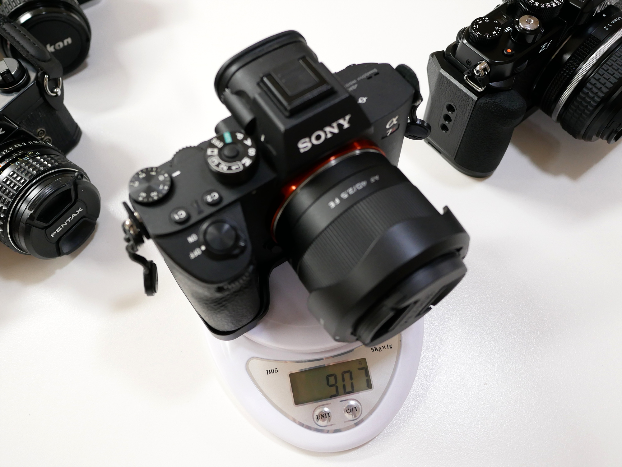 A7R3 + Viltrox 40mm f2.5 + 배터리 + 메모리 1개 + L플레이트의 무게는 907g이 나왔습니다.