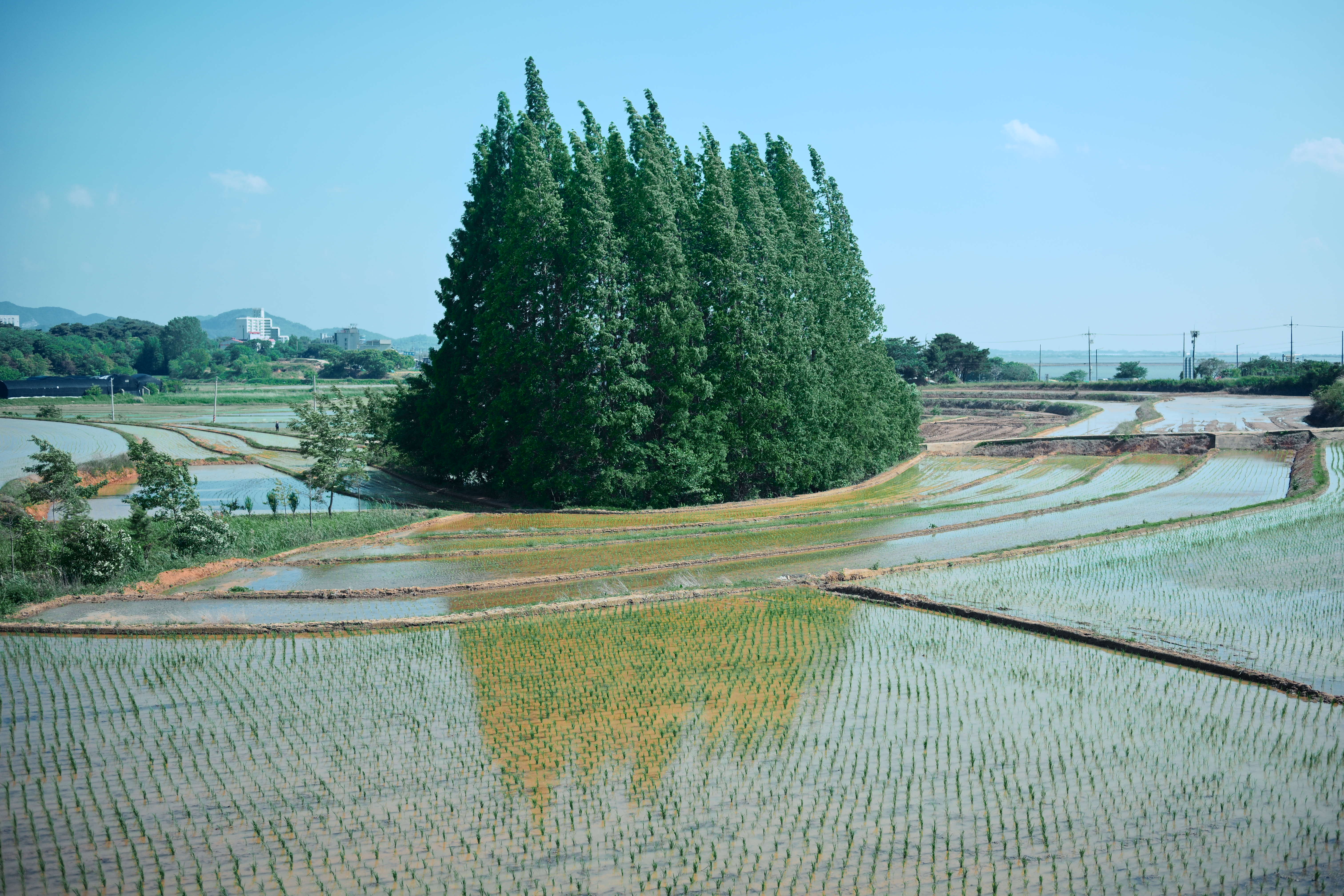 항상 이맘 때 논에 모내기를 하고 물이 차 있을 때 찍을 수 있는 풍경!