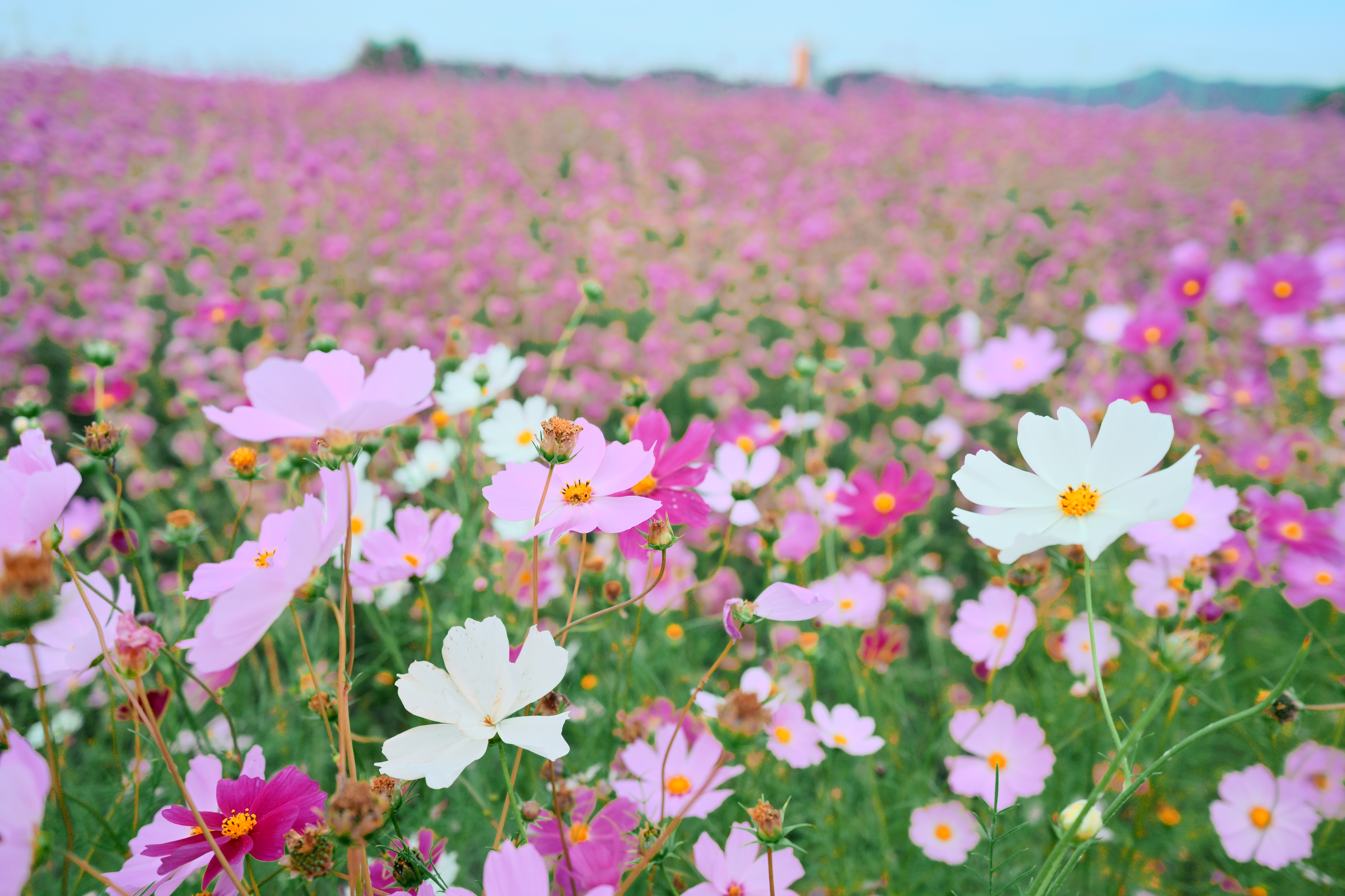 아쉽게도 이곳이 우리나라에서 가장 위쪽에 있는 곳이어서 그런지 코스모드는 대부분 져서 많이 볼 수는 없었습니다. 다행히 조금 남아 있는 코스코스를 보고 이렇게 사진을 찍었네요.