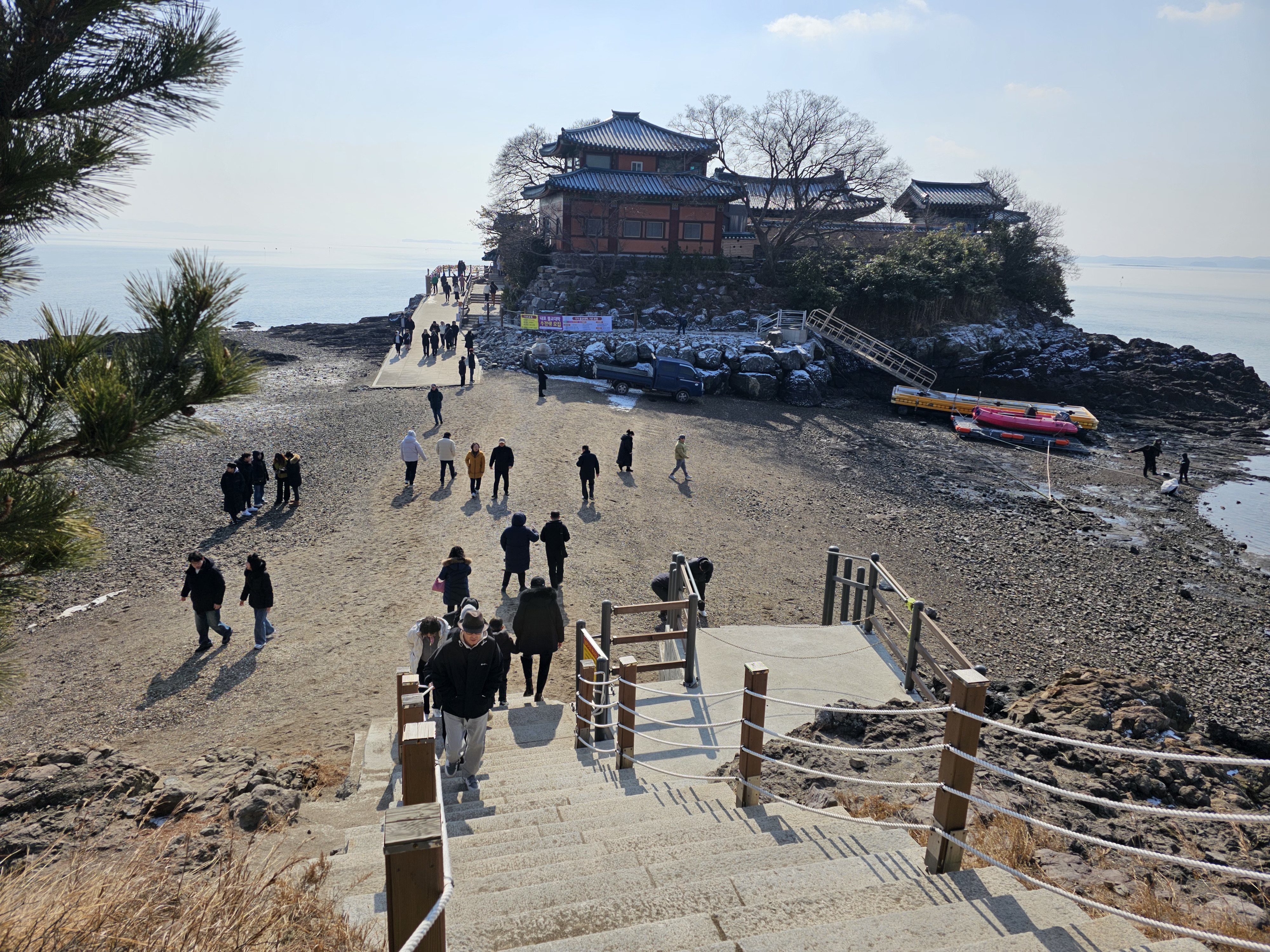 물때를 확인하고 왔고 오후 2시에 만조여서 12시에 도착했기에 빨리 둘러 보고 점심 먹고 나오면 물에 잠긴 간월암을 볼 수 있을테디까요.